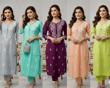 Elegant hand embroidered kurta sets perfect for festive and office wear.
